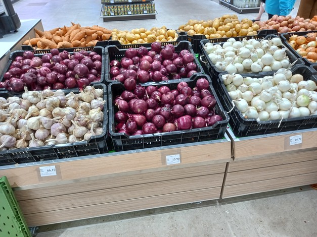 Unter den Gemüsesorten werden Gurken, Auberginen, Zwiebeln, Knoblauch und Kartoffeln lokal angebaut. Tomaten kommen auch aus der Türkei, Blockpaprika und Brokkoli werden aus den Niederlanden importiert, und Italien ist das Herkunftsland von abgepacktem Kopfsalat.