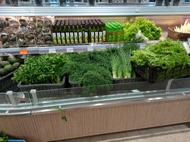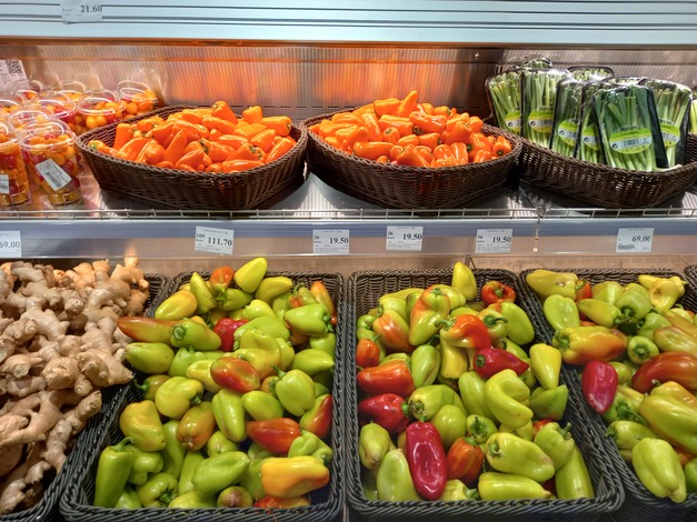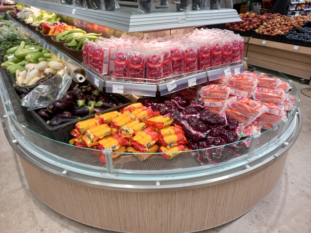 Unter den Gemüsesorten werden Gurken, Auberginen, Zwiebeln, Knoblauch und Kartoffeln lokal angebaut. Tomaten kommen auch aus der Türkei, Blockpaprika und Brokkoli werden aus den Niederlanden importiert, und Italien ist das Herkunftsland von abgepacktem Kopfsalat.