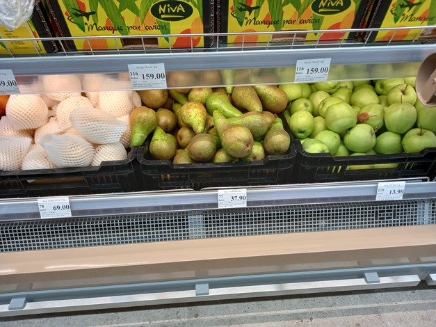 Konferenzbirnen aus den Niederlanden zu 2 EUR pro Kilo und einheimische Golden Apples für 0,75 EUR pro Kilo