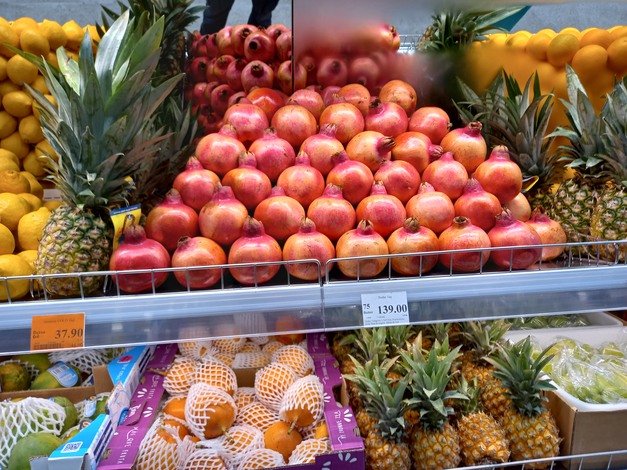 Granatäpfel kamen im September aus Südafrika (7,25 EUR pro Kilo).