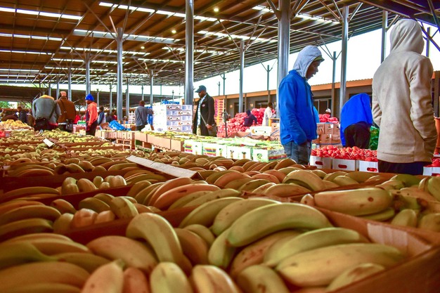 Die Bananenpreise sind derzeit so hoch, dass die Einkäufer für Schulspeisungsprogramme keine Bananen mehr kaufen, sagt Thomas van Tonder, Marktagent von Exec-U-Fruit auf dem städtischen Markt für Frischwaren in Johannesburg. Exec-U-Fruit wurde 1998 von Carlos Dos Ramos, Gavin Cos und Nelson Gomes gegründet und ist heute die drittgrößte Obstagentur auf dem Markt in Johannesburg.