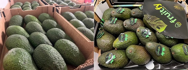 Links, israelische Pinkerton-Avocado. Rechts, spanische Hass-Avocado