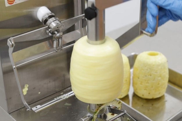 Seit Astra, ein innovativer japanischer Schälerhersteller, vor wenigen Jahren mit der Einführung seiner Schäler im Ausland begann, haben die Ananasschäler-Modelle KA-750PM schnell das Vertrauen von Unternehmen in über 60 Ländern gewonnen. Erst diese Woche hat das Unternehmen damit begonnen, sein neu entwickeltes Ananasschälwerkzeug zu verkaufen, das in Kombination mit dem Schäler für das effiziente Entfernen des Ananassamens entwickelt wurde. Ryo Takeshita, Vertriebsleiter bei Astra, stellte die bevorstehende Markteinführung des Ananasschälers vor.