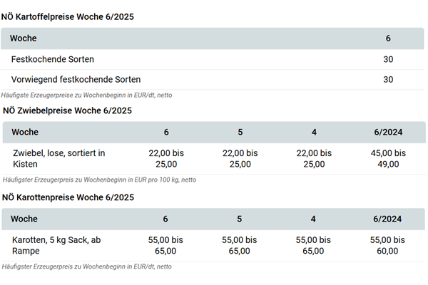 In der Semesterferienwoche in Ostösterreich setzt der nordösterreichische Karottenmarkt seine stabile Entwicklung aus den Vorwochen fort: Stetiger Absatz im Inland, überschaubarer Absatz im Export. Bei den Preisen gibt es keine Änderung zur Vorwoche. Für Karotten im 5 kg-Sack, ab Rampe je Qualität liegen die Preise unverändert bei meist 55 - 65 EUR/100 kg.