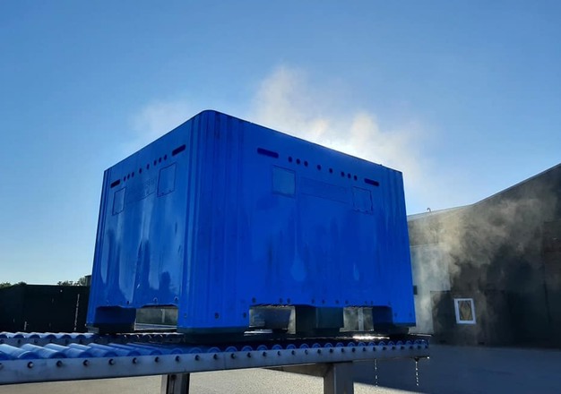 Anfänglich arbeitete der Obstproduzent mit einem Reinigungsgerät, in dem die Holzkisten mit einer Chemikalie behandelt wurden. Als diese Rückstände nicht mehr auf dem Obst vorhanden sein durften, entwickelte Van Dijk zusammen mit einem benachbarten Unternehmen eine neue mobile Waschanlage, bei der sowohl Kunststoff- als auch Holzkisten in 75 Grad heißem Wasser gereinigt werden. "Als die Chemikalie vom Markt verschwand, gab es schnell eine Nachfrage nach einer Alternative, denn jeder möchte mit sauberen Obstkisten in die neue Ernte gehen."