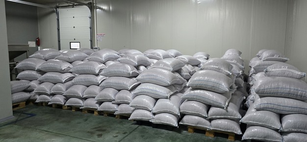 Die geschälten Nüsse werden in 40-Kilo-Säcken verpackt und an Schokoladenlieferanten verschickt.