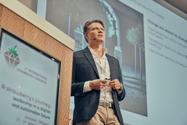 Die letzte Ausgabe im Jahr 2022 brachte mehr als 300 Teilnehmer aus 32 Ländern nach Antwerpen. Der Kongress konzentrierte sich auf die Entwicklung, Produktion und Vermarktung von Erdbeeren, mit besonderem Augenmerk auf die digitale Transformation. "Es ist nach wie vor klar, dass die Mischung aus Wissenschaft und Handel für die Entwicklung des Sektors unerlässlich ist", sagte Jan Engelen von der Genossenschaft damals. In diesem Jahr steht das Thema "Connecting the dots in a complex world of strawberries" (dt.: Verbindungen in einer komplexen Welt der Erdbeeren) im Mittelpunkt der Veranstaltung. Die ersten beiden Tage bestehen aus Vorträgen, gefolgt von zwei weiteren Tagen mit Besichtigungen und einem Mechanisierungstag. Eva: "Neben den traditionellen Themen, wie einem Überblick über den weltweiten Erdbeeranbau und Einblicken von Trendwatchern, wird den Entwicklungen im Sektor besondere Aufmerksamkeit geschenkt. Man denke nur an die CRISPR-Cas-Diskussion, aber auch an den Nutzen und die Möglichkeiten, die in KI liegen."