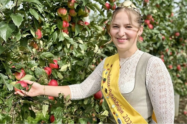 Die amtierende Bodensee-Apfelkönigin Emelie Witzigman. Der offizielle Saisonauftakt findet am 28. August in Markdorf statt.