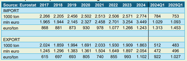Die Importe von frischem Obst sind im Laufe der Jahre relativ stabil geblieben. Im vergangenen Jahr beliefen sie sich auf 1,75 Millionen Tonnen. Die Exporte von frischem Obst waren im vergangenen Jahr mit 1,06 Millionen Tonnen eher gering. Vor einigen Jahren wurden noch 1,3 Millionen Tonnen frisches Obst exportiert.