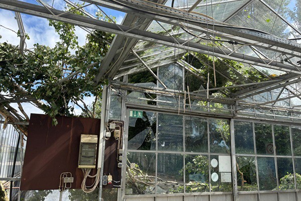 So kann es aussehen, wenn ein Baum auf ein Gewächshaus stürzt. Glas und Konstruktion wurden hier schwer beschädigt. Zum Glück kamen keine Personen zu Schaden.