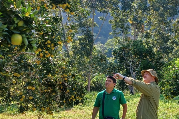 Kürzlich besuchten zwei Produktspezialisten von Eosta die Kooperative Kivinaki in Zentralperu. Nach einem großen Ausbruch der Kaffeerostkrankheit (La Roya) im Jahr 2013 verschwand der Kaffeeanbau aus den tiefer gelegenen Gebieten und viele Bauern stellten teilweise auf Orangen und Ingwer um, oft neben ihren bestehenden Kaffeeplantagen in höher gelegenen Gebieten. "Diese Diversifizierung bildet nun die Grundlage für eine neue Phase: zunächst in Form des Exports von Bio-Orangensaft und nun auch als Frischprodukt. Für Peru ist dieses Projekt von großer Bedeutung. Die Regierung hat über Agroideas den größten Teil der Investitionen in das neue Lagerhaus von Kivinaki übernommen. Ein direkter Impuls für nachhaltigen Anbau und wirtschaftliche Entwicklung in der Region."