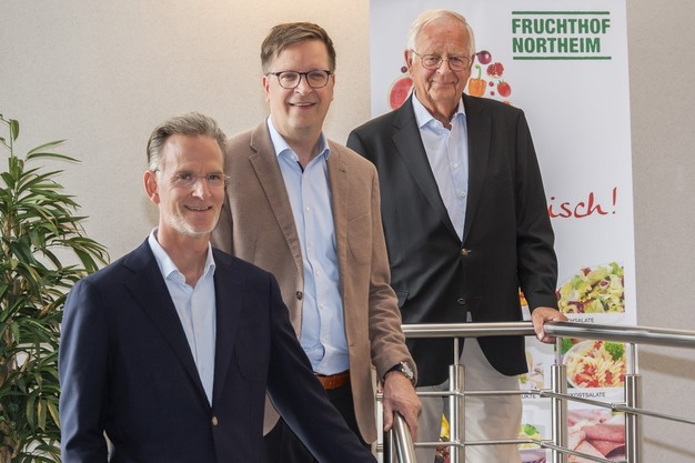 © Fruchthof NortheimLutz Hasenbeck (r) blickt auf 60 Jahre Erfahrung in der Fruchtbranche zurück. Heute leitet er die Geschicke des Fruchthofs Northeim gemeinsam mit seinen Söhnen Marc und Nils.