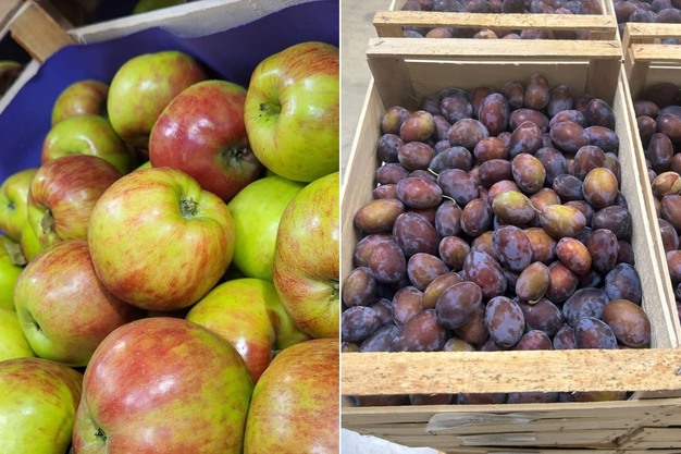Deutsche Sommeräpfel (l) sowie Zwetschgen