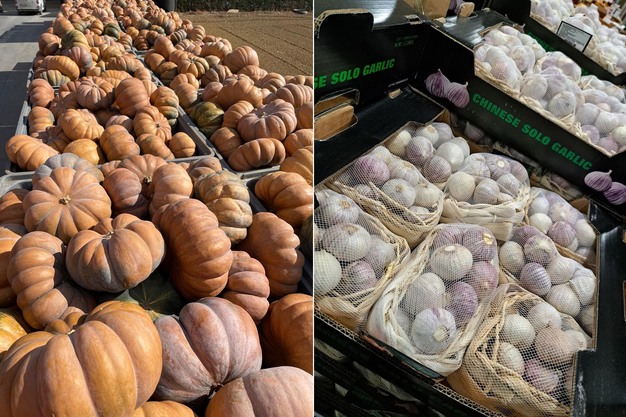 Zum Sortiment gehören auch Knoblauch aus Spanien und China, und die Muskat- und Butternusskürbissaison in Spanien und Portugal ist jetzt in vollem Gange.