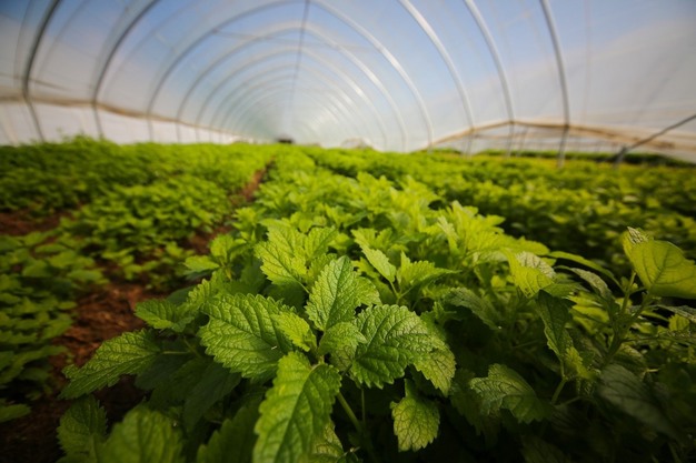 © Dreesen KräuterEnde April konnte bereits erster deutscher Schnittlauch aus Freilandanbau offeriert werden. Ab Ende September geht die diesjährige Freilandernte sukzessive zu Ende, woraufhin auf Importware aus Südeuropa sowie Ostafrika gewechselt wird. Im Bild: Zitronenmelisse im Folientunnel.