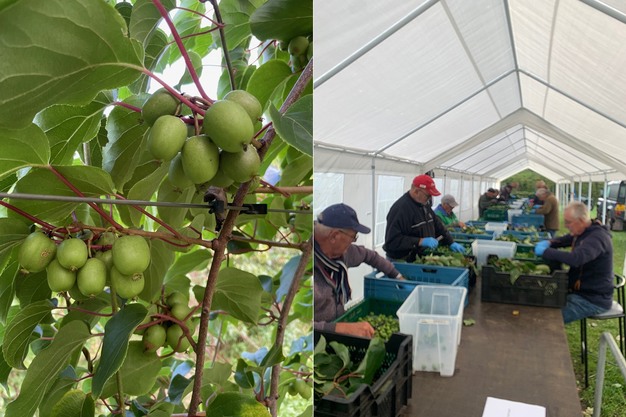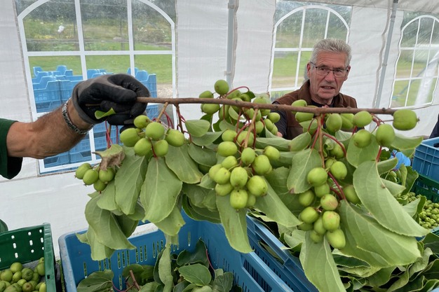 Breman hat mit der Ernte der Sorte Geneva begonnen, nächste Woche folgt die zweite Sorte Weiki. Die Kiwibeeren gehen alle an die Coöperatie Hoogstraten. "Dort werden alle unsere Kiwibeeren sortiert und verpackt. Sie werden unter anderem nach ihrer Härte sortiert. Die weicheren Kiwibeeren gehen sofort in die Läden, und die härteren Beeren reifen noch in der Kühlkammer nach", erzählt der Erzeuger. Ein Teil der Beeren kommt verpackt zurück zu seinem Betrieb, mit dem er unter anderem Hofläden in der Region beliefert. "Aber die Coöperatie Hoogstraten verkauft den Großteil an den belgischen Einzelhandel. Meiner Meinung nach gibt es für die niederländischen Supermärkte viel mehr Möglichkeiten, dieses einzigartige niederländische Produkt zu bewerben. Alle reden von Nachhaltigkeit, aber scheinen lieber exotische Produkte in die Regale zu stellen."