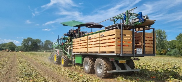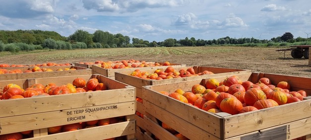 Die Kürbisernte beim biologischen Unternehmen De Terp Squashpackers in den Niederlanden ist in vollem Gange. "Wir sind seit Mitte August mit der Ernte beschäftigt und werden noch ein oder zwei Wochen weitermachen", sagt Rinke Robbers. "Wir hatten eine schöne Wachstumssaison mit guten Erträgen und guter Qualität. Die Ernte ist bis zu 20 % größer als in anderen Jahren."