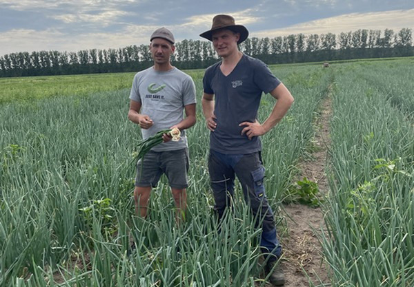 Frederic Goldkorn und Sebastian Klass - Zwiebelernte bei Bio-Hof Klass