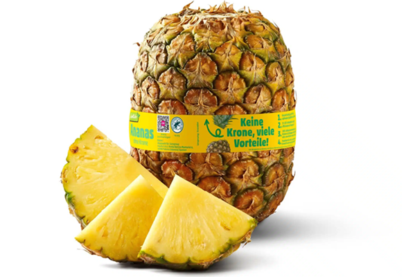 PENNY startet ab September mit der deutschlandweiten Vermarktung von Ananas ohne Krone. Dabei wird die Ananaskrone bereits bei der Ernte entfernt. Das hat durchweg Vorteile: Die Krone macht ca. 25 Prozent des Fruchtvolumens aus, sodass durch die Steigerung von Verpackungs- und Transporteffizienz eine Reduzierung des CO2-Fußabdrucks erreicht wird. Zudem können die Kronen im Ursprungsland wiederverwendet werden: Etwa 20 Prozent werden zum Anbau neuer Ananas genutzt und die restlichen 80 Prozent als Dünger. Bisher landeten die Ananaskronen mehr oder minder ungenutzt im häuslichen Abfall der Kund:innen. Die Ananas-Früchte ohne Krone sind im Laufe des Jahres in allen 2.130 PENNY-Märkten verfügbar.