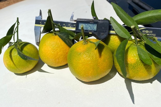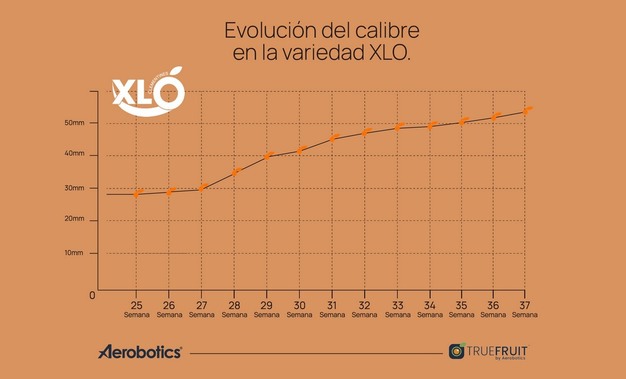 Im Laufe der Jahre konnte das gleichmäßige Wachstum der Sorte auch mit der Anwendung TrueFruit Size beobachtet werden, die eine wöchentliche Überwachung und Prognose der Größen ermöglicht. Tatsächlich hatten nach früheren Tests bis zu 86 % der geernteten XLO-Früchte einen Durchmesser von mehr als 57 mm, wobei die Größen zwischen 58 und 70 mm lagen. Diese Größen sind deutlich größer als die von Oronules und übertreffen auch die Größen der wichtigsten Club-Mandarinen der Spätsaison aus der südlichen Hemisphäre, die im September und Oktober in der EU vermarktet werden.