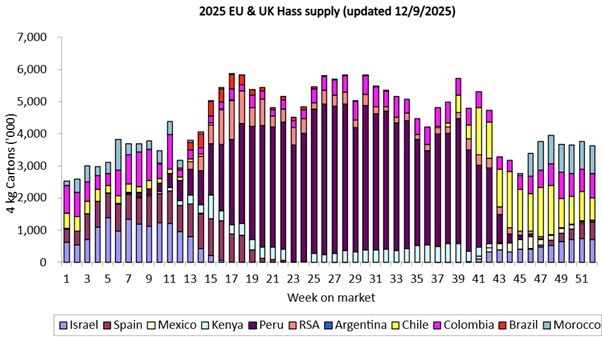 Die Nachfrage im Vereinigten Königreich ist weiterhin stark, und laut Kantar verzeichneten Avocados in den 12 Wochen bis zum 10. August 2025 im Vergleich zum Vorjahr einen Wertzuwachs von +14,5 % und ein Volumenwachstum von +15,4 %.