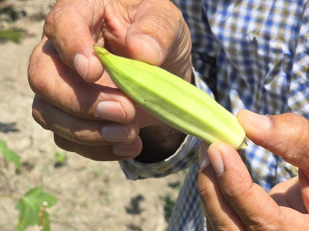 Eines der wichtigsten Exportprodukte ist Okra. "Sie ist in den Niederlanden, in Deutschland und im Vereinigten Königreich sehr beliebt", sagt Bhies. "Wussten Sie, dass die braune Kruste auf manchen Fast-Food-Burgern Okra-Pulver enthält? Wir bauen dieses Gemüse auf 20 Hektar an. Das ist eine ganze Menge. Um zehn Hektar zu bepflanzen, brauchen acht von uns eine ganze Woche. Deshalb suchen wir jetzt nach Möglichkeiten, es maschinell zu machen." Das Saatgut kommt aus Afrika über die Niederlande, die Ernte beginnt bereits nach zwei Monaten und dauert bis zu neun Monate nach der Aussaat.