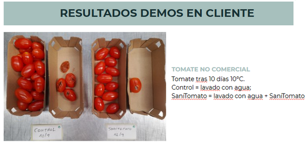 Dabei empfiehlt Mañas, bereits in der Anbauphase SilCover zu verwenden, einen bioaktiven Stimulator auf Basis von Orthokieselsäure, der eine schützende Wirkung hat. Für die Phase nach der Ernte empfiehlt sie SaniTomato, das die Tomate vor Verderb und Austrocknung schützt und die Qualität der Frucht und des Zweigs aufrechterhält. "Ohne eine gute Vorbereitung während des Anbaus kann man keine erfolgreiche Nachbehandlung erwarten", so Mañas.
