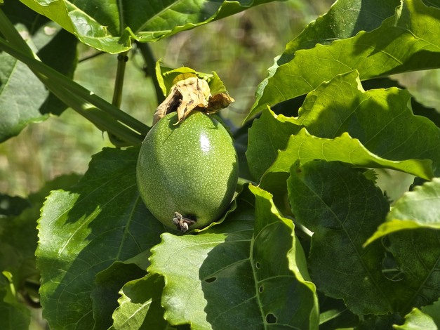 Obwohl Suriname eine einheimische gelbe Markoesa hat, liefern die brasilianischen Sorten, die ebenfalls gelb sind, mehr Saft. Diese Frucht muss noch ihre Farbe ändern.