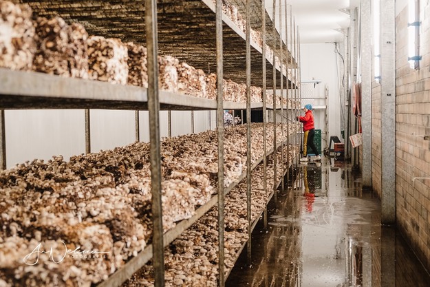 Die Umstellung auf Bio begann vor mehr als einem Jahrzehnt. Damit sollte dem Preisdruck im konventionellen Bereich entgegengewirkt werden. Das Sortiment wurde unter der Qualitätsmarke Tomabel eingeführt, was das Wachstum weiter beschleunigte. Das Sortiment wurde von Champignons und Austernpilzen um Shiitake, Nameko und Shimeji erweitert. "Heute sind wir der größte Anbieter von belgischen Bio-Pilzen. Das ist nur dank unseres genossenschaftlichen Ansatzes möglich: relativ kleine Erzeuger, die durch den Zusammenschluss ihrer Kräfte gemeinsam stark sind", sagt Pieter.