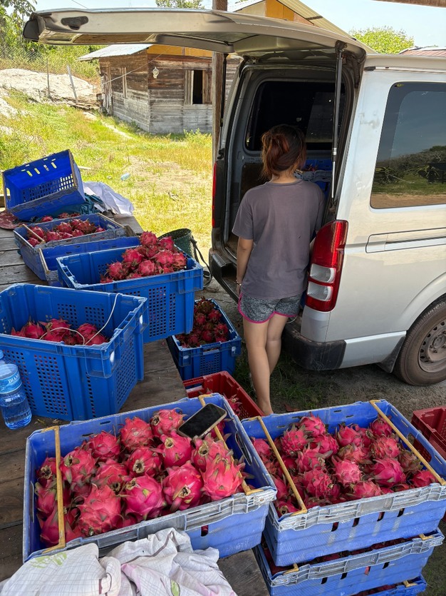 Derzeit baut die Familie Obst auf einer Fläche von 30 Hektar an, davon 25 Hektar Zitrusfrüchte und fünf Hektar Drachenfrüchte. Es gibt Pläne für eine Erweiterung auf 300 Hektar. Die Erntezeiten der verschiedenen Obstsorten folgen schön aufeinander. Es gibt Arbeit für das ganze Jahr.