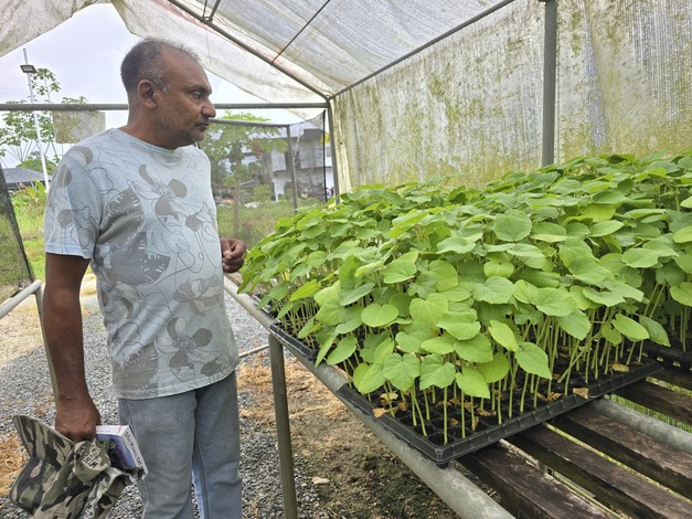 Radj Garden Plantnursery bietet eine große Auswahl an Pflanzen, darunter Pak Choi, Kaisoi, Sellerie, Chilischoten, Boulanger (Auberginen), Gurken, Fleischtomaten und Papaya sowie Langbohnen und vieles mehr. In den vergangenen Jahren hat Kewal eine steigende Nachfrage nach Salat und Paprika festgestellt. „Und was auch immer ein Kunde wünscht, werde ich säen. Der Kunde ist König."