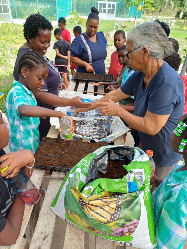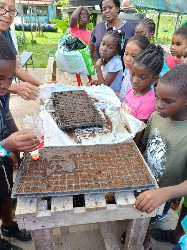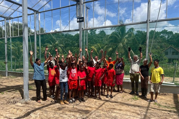 „Als ich das Grundstück kaufte, war es völlig überwuchert", erzählt Nesta Tjong A Hung, während sie sich die Hände an ihrer Latzhose abwischt. Nesta, ehemalige Seelsorgerin und mittlerweile 75 Jahre alt, baute vor 25 Jahren mit ihren Ersparnissen einen sicheren Hafen für Kinder: Mariahoeve. Was als bescheidenes Heim begann, entwickelte sich zu einem Zentrum, in dem nicht nur Liebe und Fürsorge, sondern auch Gemüse im Überfluss vorhanden sind. Nesta ist der Meinung, dass jedes Kind täglich zehn Esslöffel Gemüse essen sollte. Gemüse ist in Suriname teuer und stellte den höchsten Kostenfaktor für den Unterhalt der Kinder dar. Deshalb beschlossen Nesta und ihr Ehemann John, selbst Gemüse anzubauen.