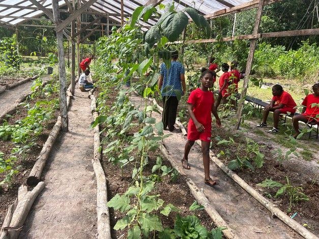 Mit einer Machete und viel Durchhaltevermögen begann sie, das Gelände zu säubern. „Sobald ein Stück frei war, pflanzte ich etwas. Sonst wuchs das Unkraut einfach wieder nach." So entstand Schritt für Schritt ein selbstversorgender Gemüsegarten, der heute nicht nur die 21 Kinder des Kinderheims ernährt, sondern auch benachteiligte Kinder einer nahe gelegenen Schule.