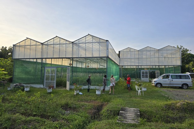 Anfangs arbeitete Nesta mit Freilandkulturen. „Aber in einem Gewächshaus kann man Regen und Insekten fernhalten und für Schatten sorgen", sagt sie. Deshalb baute sie ein Gewächshaus aus Holz, aber das flache Dach erwies sich als nicht geeignet für die tropischen Regenfälle. „Es ist einfach eingestürzt. Dann habe ich das Dach V-förmig gestaltet, um eine bessere Entwässerung zu erreichen."