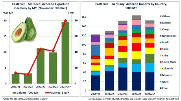 Marokko hat seine Präsenz auf dem deutschen Avocado-Markt ausgebaut und laut Daten von EastFruit seine Exportmengen in der Saison 2024/25 mehr als verdoppelt.