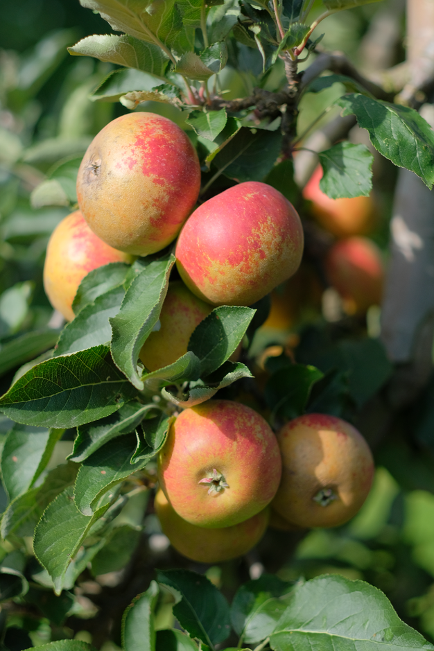 Dass er diese Sorte beibehält, hat seiner Meinung nach alles mit dem Geschmack und den anbautechnischen Eigenschaften zu tun. „Der Cox's Orange ist ein schmackhafter, robuster Apfel mit mäßiger Wuchskraft, später Blüte und geringer Anfälligkeit für Schorf. Er passt perfekt zum normannischen Terroir und gedeiht sowohl im Norden Frankreichs als auch auf der anderen Seite des Ärmelkanals hervorragend."