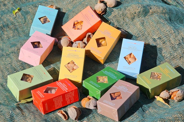 Convicinum reagiert geschickt darauf, mit verschiedenen Verpackungsformen. Für den Einzelhandel gibt es biologische, geschälte Mandeln in Beuteln zu 120 Gramm, 500 Gramm und einem Kilo. Für Großhändler und traditionelle Vertriebskanäle sind ungeschälte Mandeln in Säcken zu 1, 5 und 10 Kilo erhältlich. Darüber hinaus gibt es eine Luxuslinie in Geschenkverpackungen zu 120 Gramm, die für Feinschmecker und den Export bestimmt ist.
