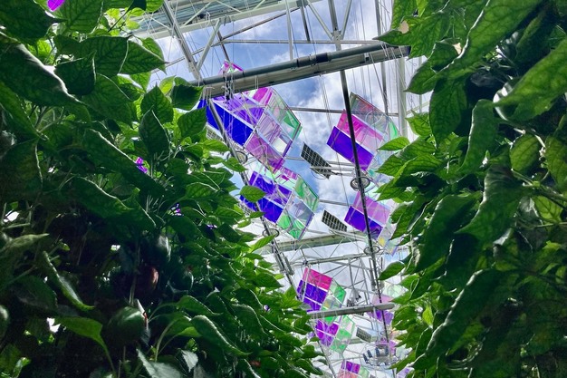 Voltiris hat in Zusammenarbeit mit 3M Module (unten im Bild) entwickelt, die einen speziellen Filter verwenden, der das für das Wachstum der Erdbeeren notwendige Licht durchlässt und gleichzeitig unerwünschte Wärme in erneuerbare Energie umwandelt. Das bedeutet bis zu 5 °C kühlere Pflanzen und größere Erdbeeren – und gleichzeitig die Erzeugung erneuerbarer Energie direkt im Gewächshaus.