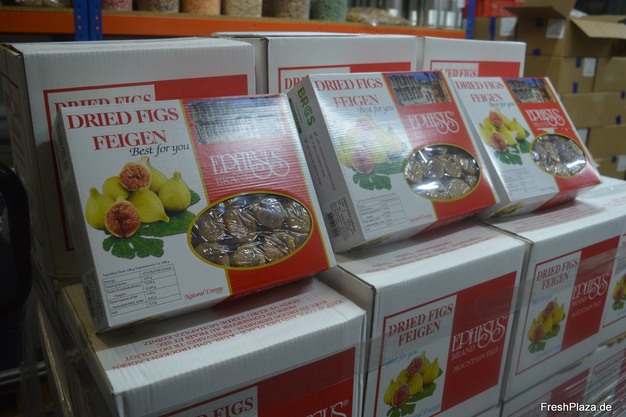 Im Bereich der Trockenfrüchte stellt man ab Oktober/November sukzessive auf Ware aus neuer Ernte um. "Wir bieten nun sowohl bei Feigen (unten im Bild) als auch bei Aprikosen nur noch neuerntige Ware türkischen Ursprungs an", so Seyfettin Kaplan, Feinkosthändler am Großmarkt Karlsruhe. "Durch den Frost während der Blüte im April und Mai hat es speziell bei den Aprikosen gravierende Ertragsausfälle gegeben. Im Vergleich zum Vorjahr haben sich die Preise bei diesem Artikel mitunter verdoppelt. Trotz dieser hohen Marktpreise ist die Nachfrage ungebrochen hoch und stabil."