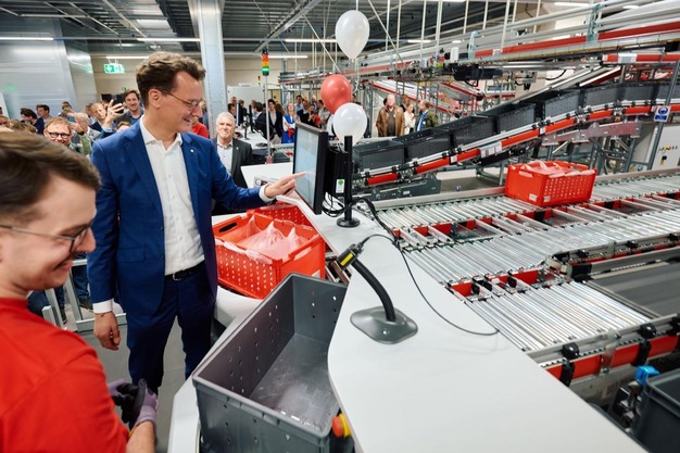 © Picnic Der nordrhein-westfälische Ministerpräsident Henrik Wüst eröffnete im Juni das robotergestützte Distributionszentrum in Oberhausen.