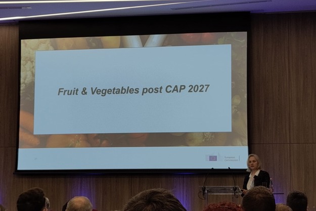 Der zweite Tag stand primär im Zeichen der Präsentation des neuen EU-GMO-Förderwesens. Kristine Bori (oben im Bild) stellte "GAP und Obst und Gemüse, Status und Ausblick 2028" vor. "Diese Präsentation führte zu einer spürbaren Verunsicherung der TeilnehmerInnen und löste anhaltende, teilweise emotionale Diskussionen aus, die sich über den ganzen Tag und bis in den Abend zogen. Ein Stück weit beruhigend wirkte der nachfolgende Vortrag von Márton Bittsánsky zum Thema 'GMO: Konzentration des Angebots zur Verbesserung der Position der Landwirte in der Wertschöpfungskette für eine bessere Organisation der Lieferkette'. Er konnte einige kritische Punkte einordnen und bot Handlungsperspektiven, wenngleich die Debatten damit nicht vollständig zum Erliegen kamen. Ein humorvoller Blick über die Grenzen – 100 Jahre EO-Erfahrung aus Belgien."
