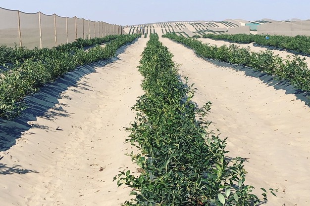 Während viele andere Erzeuger Blaubeeren in Töpfen anbauen, geht Valle y Pampa einen anderen Weg: Sie pflanzen direkt in den Boden. „Unser Boden besteht aus feinem, totem Sand, echtem Wüstensand. Aber wir haben ein System entwickelt, bei dem wir einen Streifen Substrat auftragen, als wäre es ein langer, durchgehender Topf", erklärt Bentín.