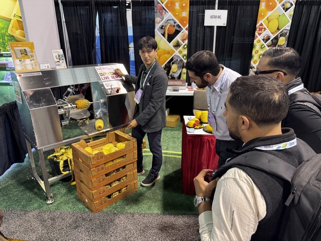 Astra präsentierte den FAP-3000 auf mehreren großen Messen, darunter IFPA, EATS in Chicago und Gulfood Manufacturing in Dubai. „Das Feedback war fantastisch", sagt Takeshita. „Die Besucher waren begeistert davon, wie sauber und effizient die Maschine Ananas schält und entkernt."
