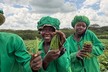 © FreshPlazaGamaliel Ishimwe (Agronom), Marie-Claire Nikuze (Leiterin des operativen Geschäfts) und Nelson Mwiti (Leiter der Produktion) zusammen mit zwei Erntehelfern.