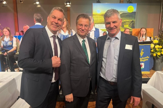 © Reichenau-Gemüse eGJohannes Bliestle und Christian Müller von der Reichenau-Gemüse eG mit Peter Hauk (m), dem Minister für Ernährung, Ländlichen Raum und Verbraucherschutz. Der baden-württembergische Gemeinschaftsstand trug in diesem Jahr ein Motiv der Insel Reichenau. „Unsere Insel steht damit sinnbildlich für Baden-Württemberg. Für uns als Reichenauer Gemüseerzeuger ist dies eine besondere Wertschätzung und wir sind stolz, unsere Region zu vertreten", heißt es vonseiten der süddeutschen Genossenschaft.