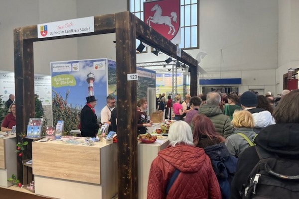 Unter dem Dach der Wirtschaftsförderung beteiligten sich alle Städte und Gemeinden im Kreisgebiet, der Landkreis Stade, die Sparkasse Stade-Altes Land, die Kreissparkasse Stade, die Volksbank Stade-Cuxhaven und der Förderverein Integriertes Obst aus dem Alten Land am Messestand, finanziell unterstützt von der Frugro und der Marktgemeinschaft Altes Land MAL, die auch drei Tonnen Äpfel bereitstellt. „Dieses Jahr nehmen wir die auch in Berlin sehr beliebte Apfelsorte Wellant mit und die neue Sorte Bloss, eine herrlich süße und knackige Sorte, die jetzt neu auf den Markt kommt", freute sich Hilke Ehlers vom Förderverein.