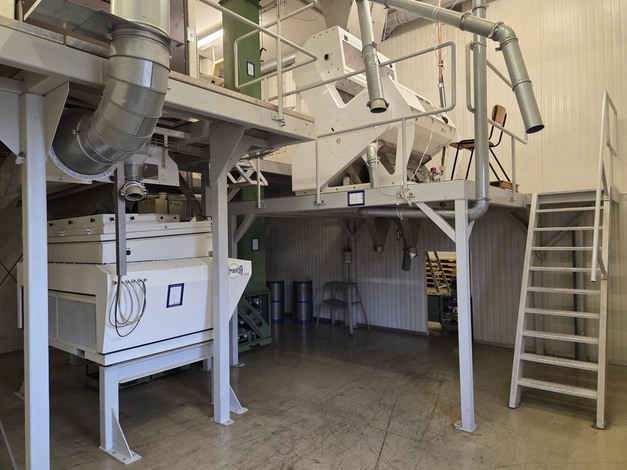 Darunter befindet sich eine besondere Maschine, die wir zum ersten Mal anbieten: die Farbsortiermaschine von Cimbria S.r.l. Diese Maschine kann mit Hilfe mehrerer Kameras Farbunterschiede erkennen, sodass beispielsweise eine Charge Leinsamen mit fast 100-prozentiger Sicherheit ausschließlich aus guten und reifen Samen besteht. Für jedes Produkt kann ein Farbschema eingestellt werden, das dafür sorgt, dass die Charge so rein wie möglich ist. Auch die komplette Beutelabfüll- und Verpackungslinie ist verfügbar.