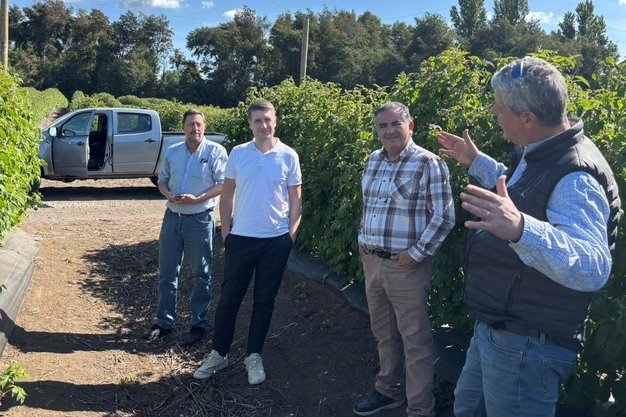 © Herbert Widmann GmbHUm diese hohen Qualitätsstandards sicherzustellen, ist das Widmann-Team jedes Jahr selbst vor Ort in Chile, um sich persönlich von Anbau, Ernte und Qualität der Heidelbeeren zu überzeugen. Im Bild: Geschäftsführer André Kirchenwitz (2. von links) zu Besuch in Chile.