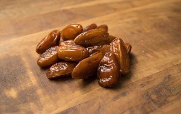 Im Uhrzeigersinn von oben links: Dattelstücke, Aprikosenstücke, Feigen und Feigenstücke