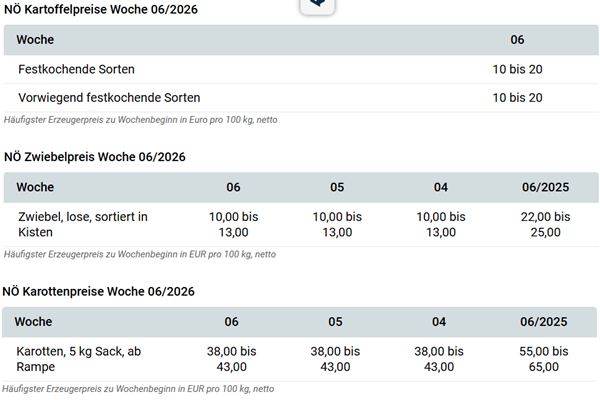 In der Semesterferienwoche in Ostösterreich setzt der NÖ Karottenmarkt seine Entwicklung aus den Vorwochen fort. Der Absatz im heimischen LEH läuft stetig auf zufriedenstellendem Niveau. Exporte können weiterhin in überschaubarem Umfang zu stabilen Konditionen getätigt werden. Auch preislich gibt es keine Änderungen im Vergleich zu den Vorwochen. Zu Wochenbeginn wurde für Karotten im 5-kg-Sack, ab Rampe, je nach Qualität meist 38 - 43 EUR/100 kg bezahlt.